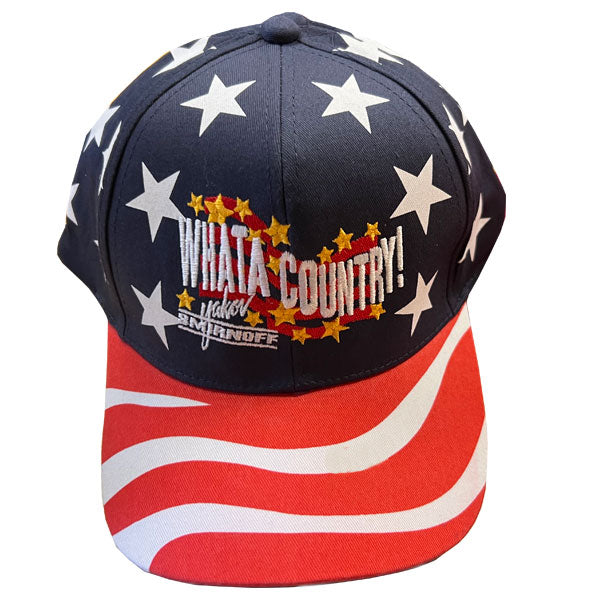 Share Yakov’s famous catch phrase wherever you go with this patriotic Red, White & Blue “What A Country1” Cap.